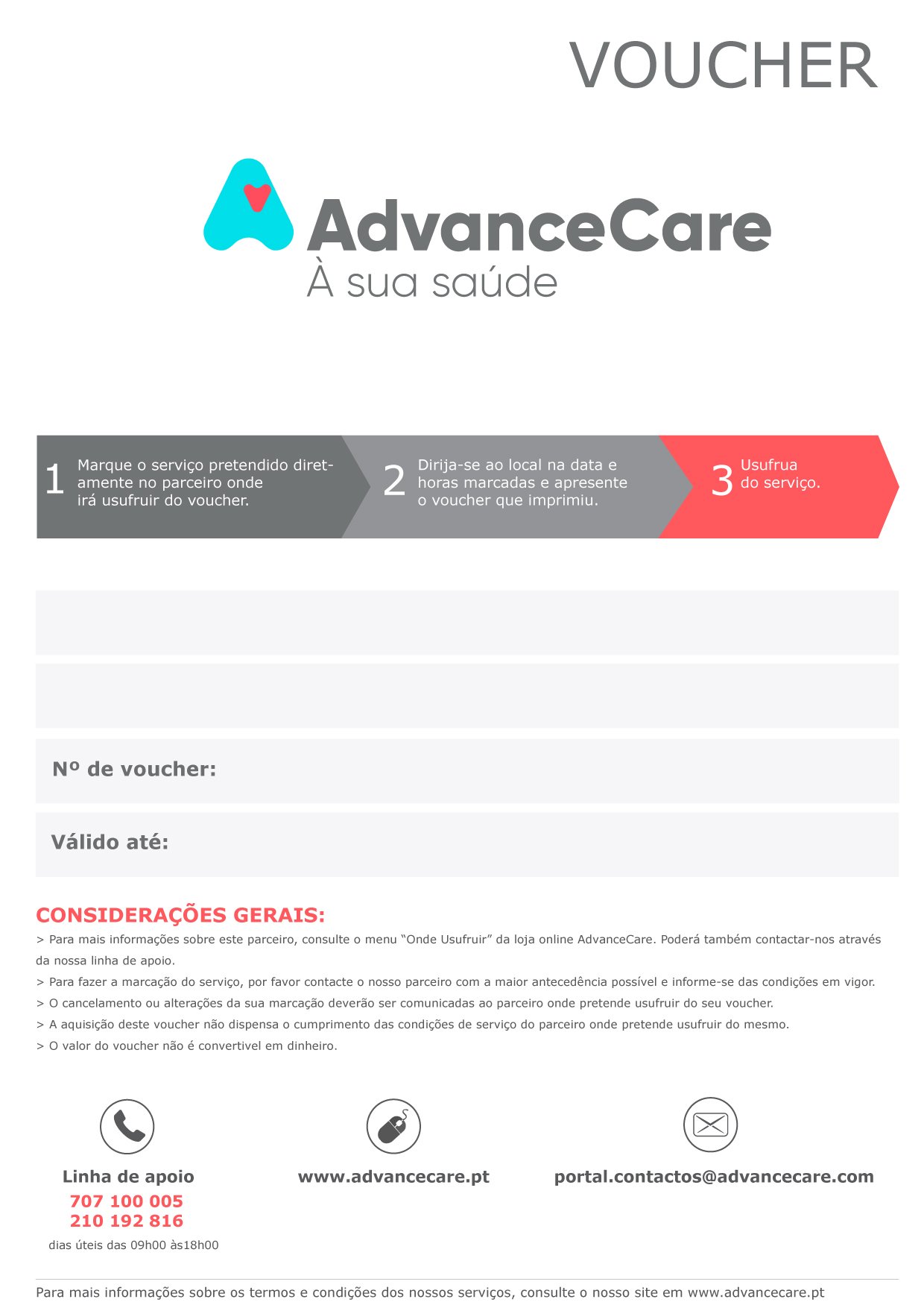 1. A AdvanceCare e/ou os Parceiros não são responsáveis por vouchers, ou referências de vouchers, não utilizados, perdidos, destruídos ou roubados.